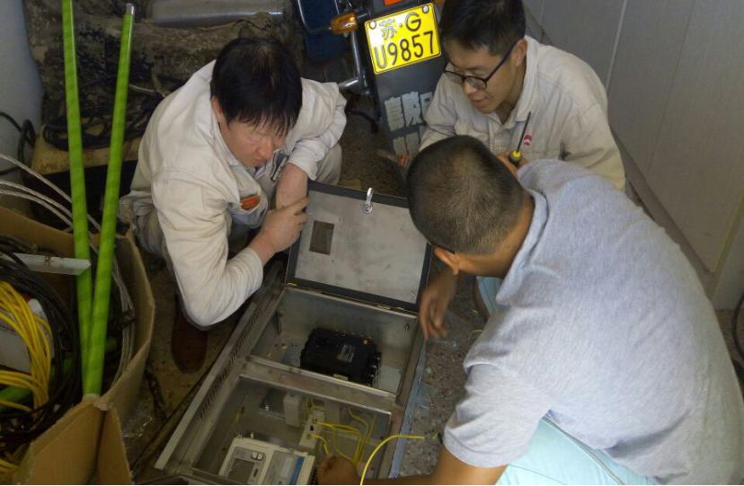 徐圩供電所老師傅指導(dǎo)新進(jìn)員工學(xué)習(xí)計(jì)量箱安裝