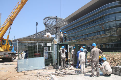 該所在承攬此項(xiàng)工程后,克服施工時(shí)間緊、現(xiàn)場地形復(fù)雜、交叉作業(yè)多等困難,精心策劃、周密部署,嚴(yán)格按照工程施工預(yù)案,在演藝廣場和美食街地段新增一條10千伏電源,改造兩處10千伏電源進(jìn)口,敷設(shè)5公里10千伏高壓電纜,設(shè)置11臺(tái)電源分支箱、3臺(tái)路燈廂變,安裝5臺(tái)400千伏安變壓器,最終形成了一個(gè)主供、兩個(gè)備用的供電輸送網(wǎng)格局。