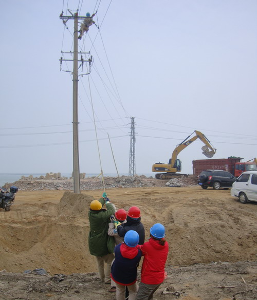 11月17日,臺北供電所全體職工放棄休息,在開發(fā)區(qū)大浦工業(yè)園區(qū)架設(shè)供電線路,保證園區(qū)建設(shè)單位按時(shí)開工。