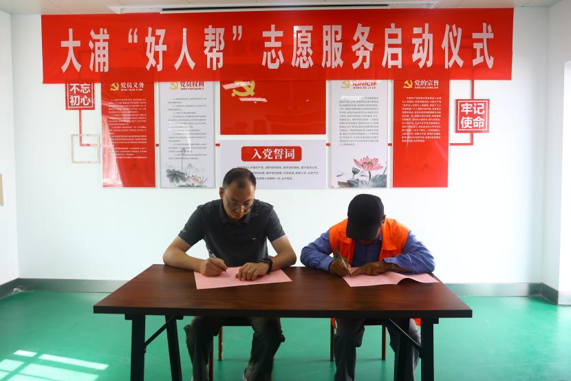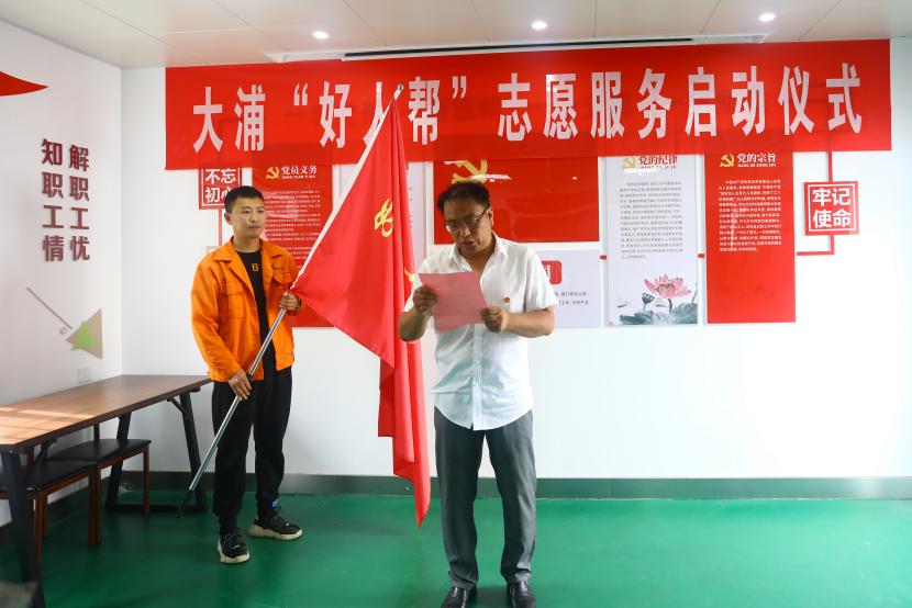 公司黨委書記、董事長王德志為“中國好人”常皓同志頒發(fā)了聘書,聘請常皓同志擔(dān)任“好人幫”志愿服務(wù)隊(duì)名譽(yù)輔導(dǎo)員。黨委副書記、工會主席、副總經(jīng)理傅健向“好人幫”志愿服務(wù)隊(duì)進(jìn)行了授旗,大浦分公司負(fù)責(zé)人代表“好人幫”志愿服務(wù)隊(duì)宣讀了《爭當(dāng)好人倡議書》,三名“好人幫”志愿服務(wù)隊(duì)成員與幫扶對象結(jié)對并簽訂了幫扶協(xié)議書。
