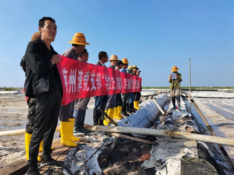 為進(jìn)一步深化黨史學(xué)習(xí)教育,加強(qiáng)黨員和領(lǐng)導(dǎo)干部的家風(fēng)建設(shè),9月16日下午,海州灣黨支部結(jié)合解放戰(zhàn)爭(zhēng)史的學(xué)習(xí),在大八組扒鹽現(xiàn)場(chǎng)開(kāi)展“學(xué)黨史、傳家風(fēng)、銘初心”主題黨日活動(dòng),團(tuán)結(jié)引領(lǐng)廣大職工傳承紅色家風(fēng),賡續(xù)精神血脈,堅(jiān)定不移聽(tīng)黨話、跟黨走,銘記黨史黨恩,弘揚(yáng)家國(guó)情懷。