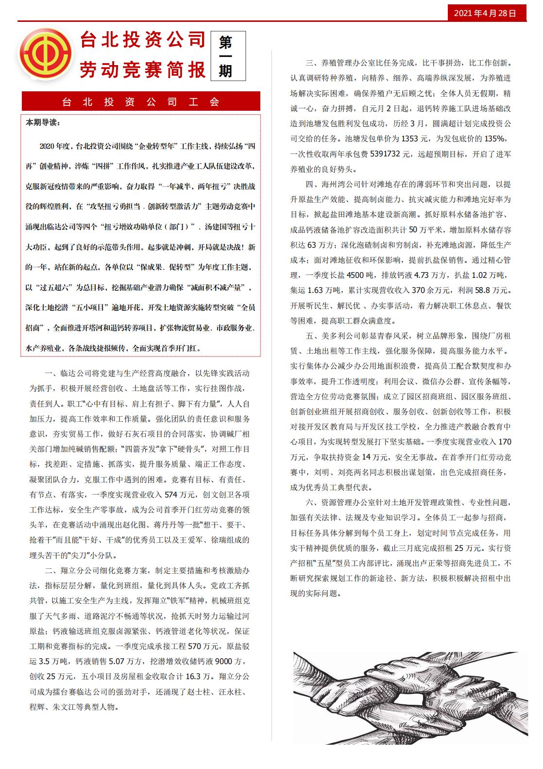 公司工會(huì)勞動(dòng)競(jìng)賽簡(jiǎn)報(bào)(第一期)
